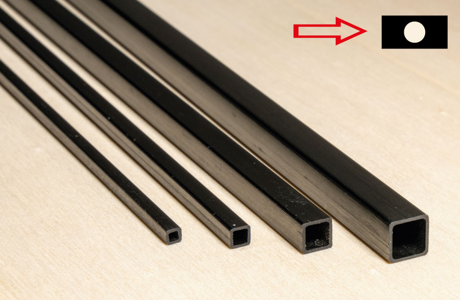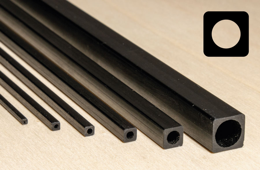 • Tube carbone carré/rond 4,0 x 2,5 x 1000 mm