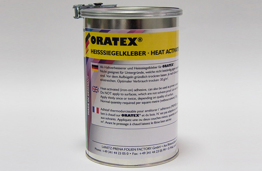 ORATEX®Adhésive thermoactivable peut être utilisé pour améliorer l’adhésion de nos produits à repassage, ainsi que comme adhésive spécial pour ORATEX®. Ne convient pas aux supports non résistants aux solvants organiques. Laisser bien sécher avant de repasser. Selon la surface il faut mettre une ou deux couches d’adhésive. La quantité (sec) idéal à être mis sur la surface est : 20 g/m².