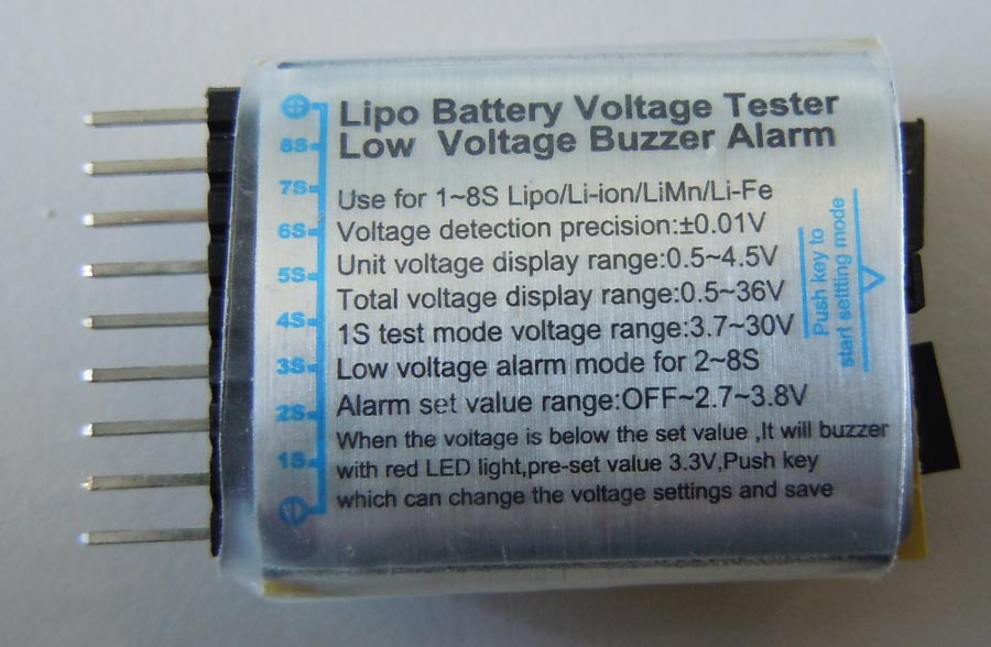 alarme LiPo pour 1 – 8 cellules LiPo, klaxon programmable, 40 x 24 x 9 mm