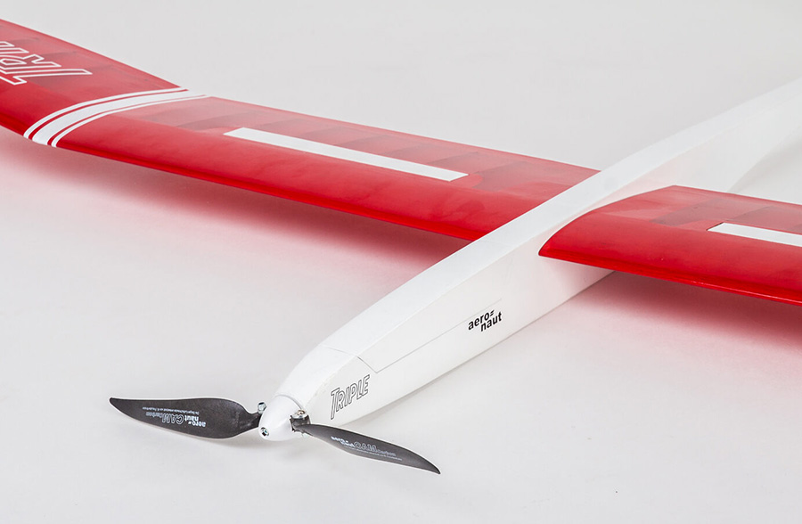Naviguer confortablement dans les thermiques, décoller avec la corde en caoutchouc et participer à une compétition RES ou célébrer des acrobaties aériennes rapides – tout cela est possible avec « Triple ». Ce concept de modèle entièrement nouveau propose un fuselage galbé avec un empennage en V (soit en tant que planeur, soit en tant que planeur électrique – les deux versions sont incluses dans le kit) et trois envergures différentes. Toutes les ailes peuvent être attachées au fuselage comme vous le souhaitez. Complètement sans outils, avec une forte sécurité magnétique. Un changement rapide est également possible sur le site du vol. « Triple speed » a une envergure de 178 cm, une forme en V simple et de longs ailerons. Le profil a un dessous droit et permet des vols rapides et de merveilleuses voltiges en planeur. « Triple RES » a une envergure de 199 cm et une forme en V plus haute que la « Triple thermique ». Conformément au règlement de compétition RES, le modèle n’est contrôlé que par le gouvernail, la profondeur et les spoilers. « Triple thermique » a une envergure de 255 cm et est équipé d’ailerons et de spoilers. Le profil est conçu pour les vols thermiques et donne au modèle des performances de vol bonnes et puissantes. Avec sa conception mince, la coque du planeur offre les meilleures propriétés aérodynamiques. La coque électrique n’est qu’un peu plus large à l’avant, peut accueillir confortablement des moteurs de 28 mm et offre de la place pour un LiPo 3s d’environ 2 500 mAh. Les deux fuselages ont en commun la verrière amovible avec verrouillage magnétique et un couvercle de fuselage sur le dessous, derrière lequel les servos de l’empennage en V sont cachés. Tous les modèles sont entièrement en bois et suivent ainsi le principe éprouvé du modélisme chez aero-naut. La coque est construite en contreplaqué de peuplier et en balsa. Le système d’enfichage innovant permet un montage rapide et sans distorsion. La queue en V est également assemblée à partir de pièces prêtes au laser et collée à un support de montage supplémentaire inclus. Les ailes sont construites à l’aide d’une construction à nervures, ont des longerons de pin continus et une boîte avec des rainures afin que l’assemblage sur n’importe quel panneau de construction de niveau soit rapide et facile. e bordé de bord de fuite est également rainuré afin que rien ne puisse se tromper avec la position des nervures. Cela permet également aux débutants de modéliser des modèles en bois d’obtenir rapidement leur propre modèle parfaitement construit et volant bien. Le kit est également idéal pour le travail des jeunes et pour les projets de construction communs dans les clubs.