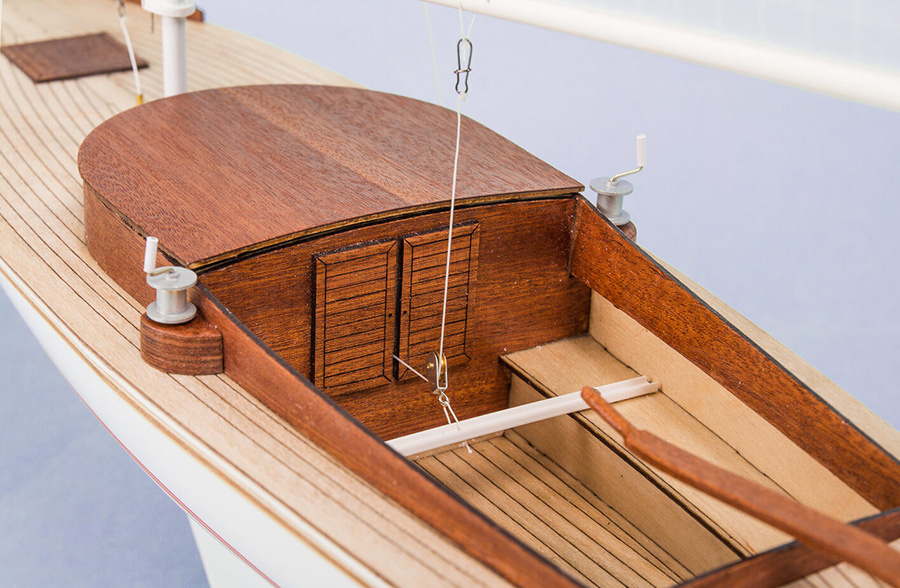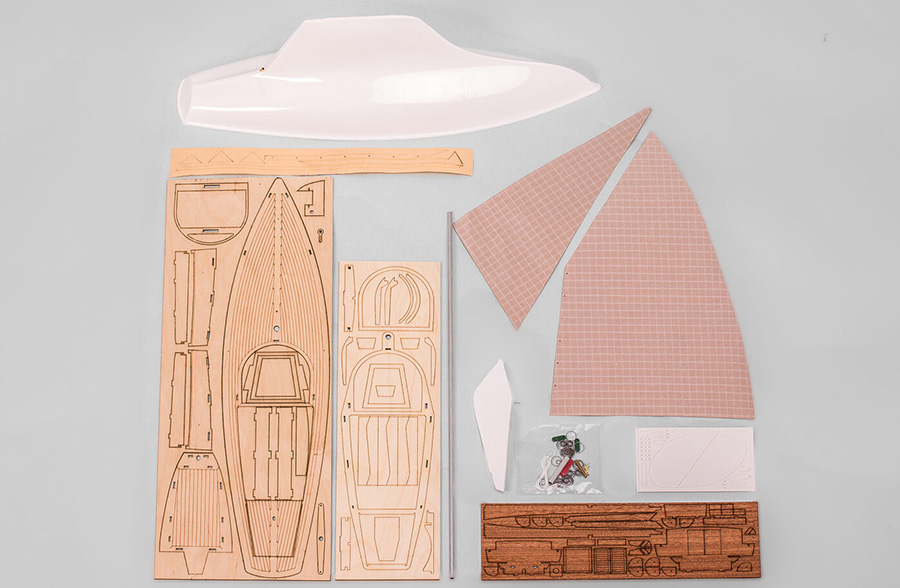 Le voilier Lili est construit sur une coque en plastique embouti avec des pièces en bois découpées au laser avec précision (acajou, bouleau). Le kit s’adresse également aux débutants dans le domaine des voiliers. Les pièces parfaitement ajustées permettent un montage facile. Le cockpit est assemblé en une seule pièce puis inséré et collé dans la coque. Les supports pour le mât sont déjà spécifiés dans le pont. Les lignes de pont ont été gravées au laser. Le bateau contient de nombreux détails et accessoires tels que poulies, treuils, poulies. Un support de bateau est également inclus. Les voiles ont déjà été découpées avec précision au laser et peuvent être contrôlées à l’aide d’un servo. Le ballast requis est également inclus dans le kit. En raison des instructions de construction uniques de style 3D connues d’aero-naut, la construction du modèle devient une expérience particulière.