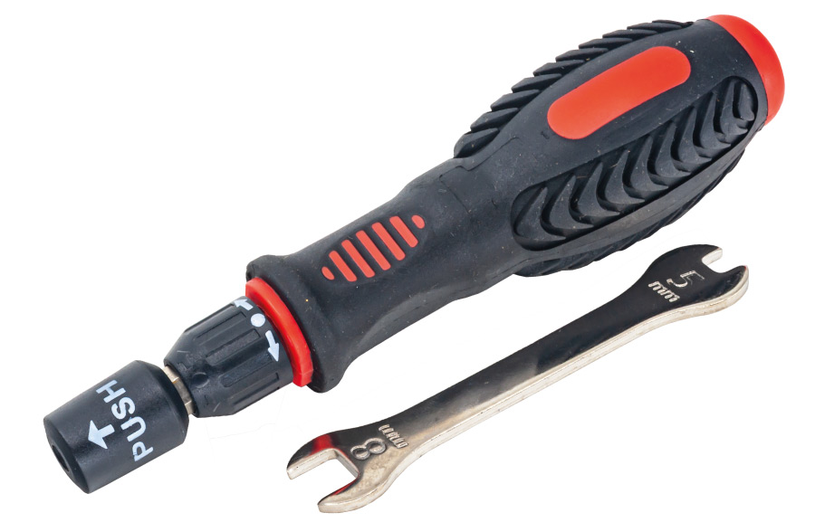 Set de tournevis en étui, avec manche et insert interchangeable (croix/inbus/plat/clé à tube). Avec la « fonction cliquet » de la manche, facile à utiliser.