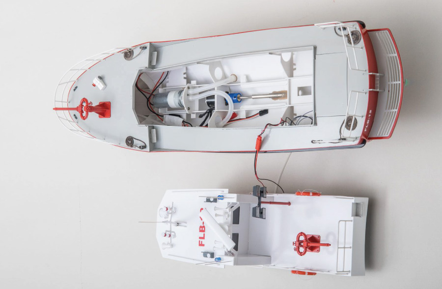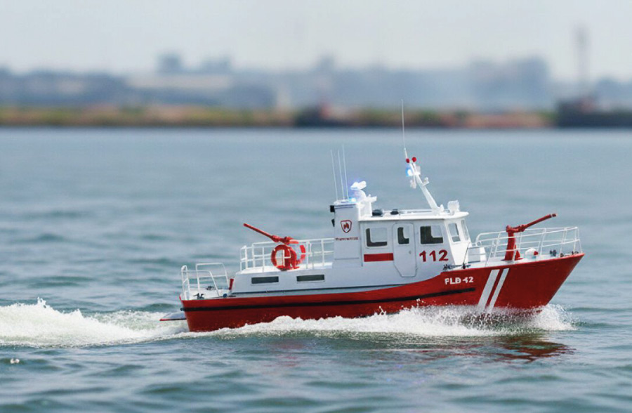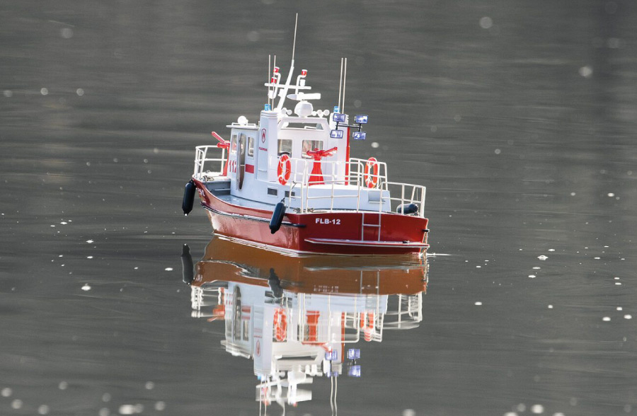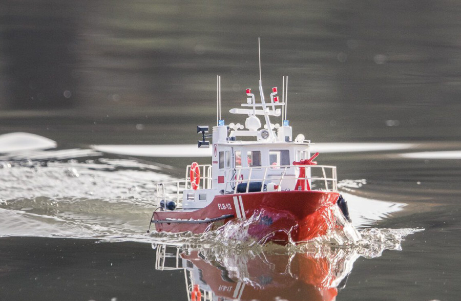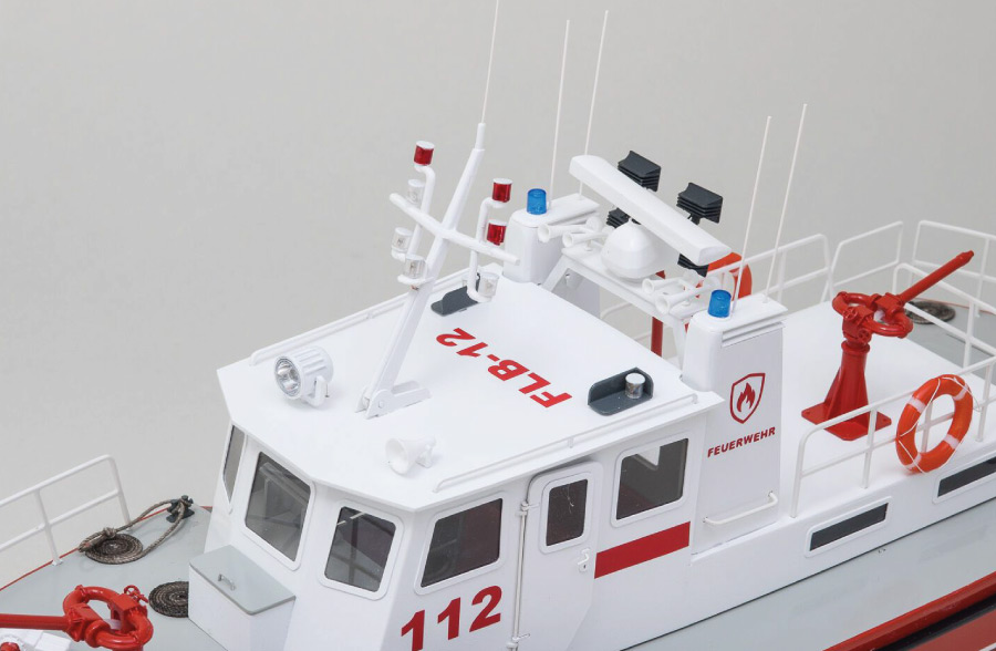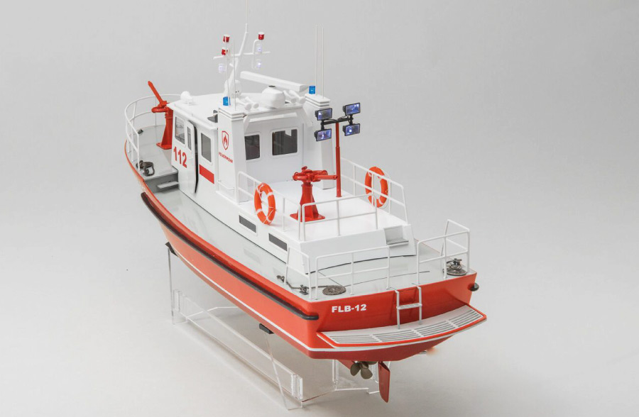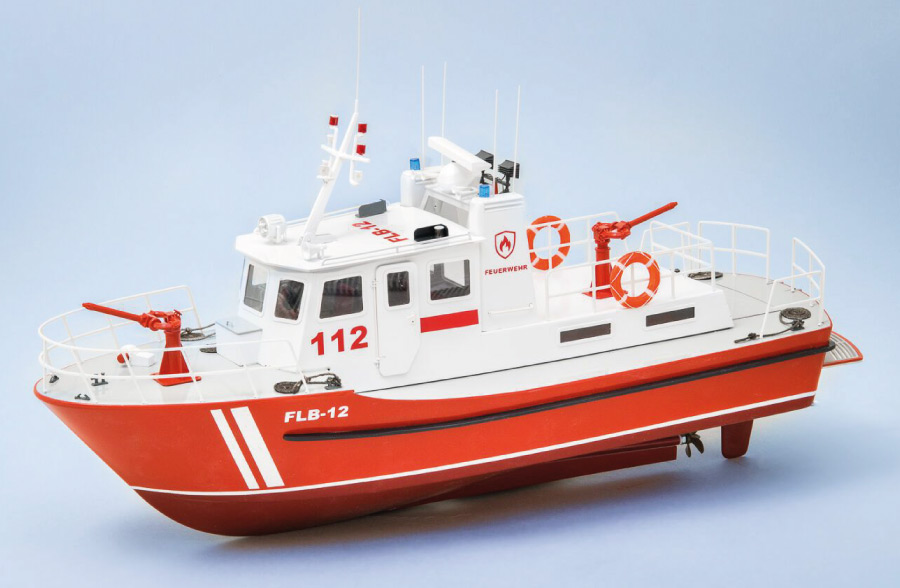 Das FLB-12 ist ein Feuerlöschboot, wie es auf deutschen Binnengewässern zum Einsatz kommt. Es wurde Originalbooten nachempfunden und besticht durch einen sehr hohen Detaillierungsgrad. Angetrieben wird das Modell von einem 28-mm-Außenläufer-Motor.