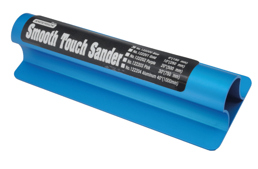 Schleifleiste 150 x 53 mm, blau eloxiert, sehr gut in der Hand liegend. Kann mit selbstklebendem Schleifpapier beklebt werden.